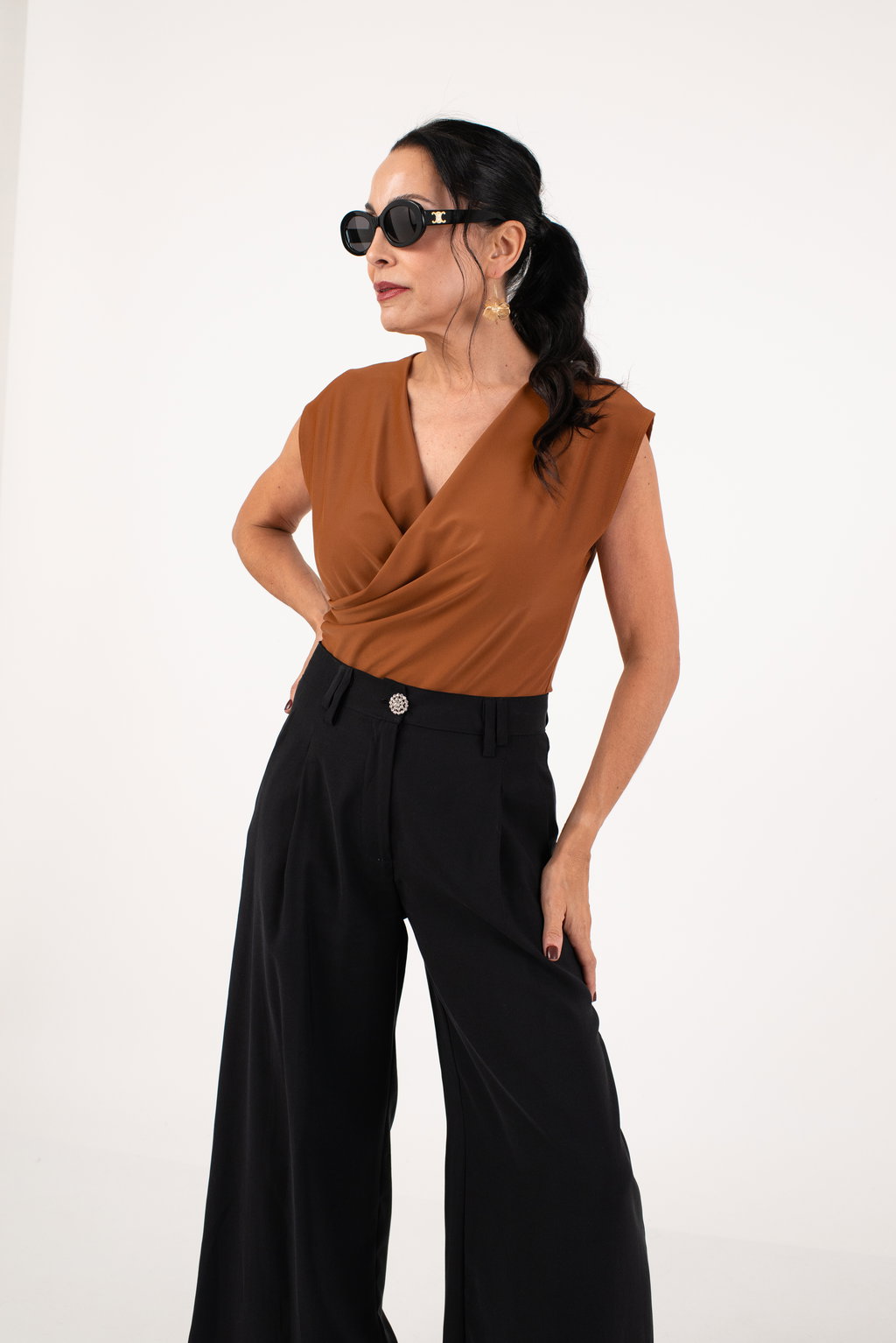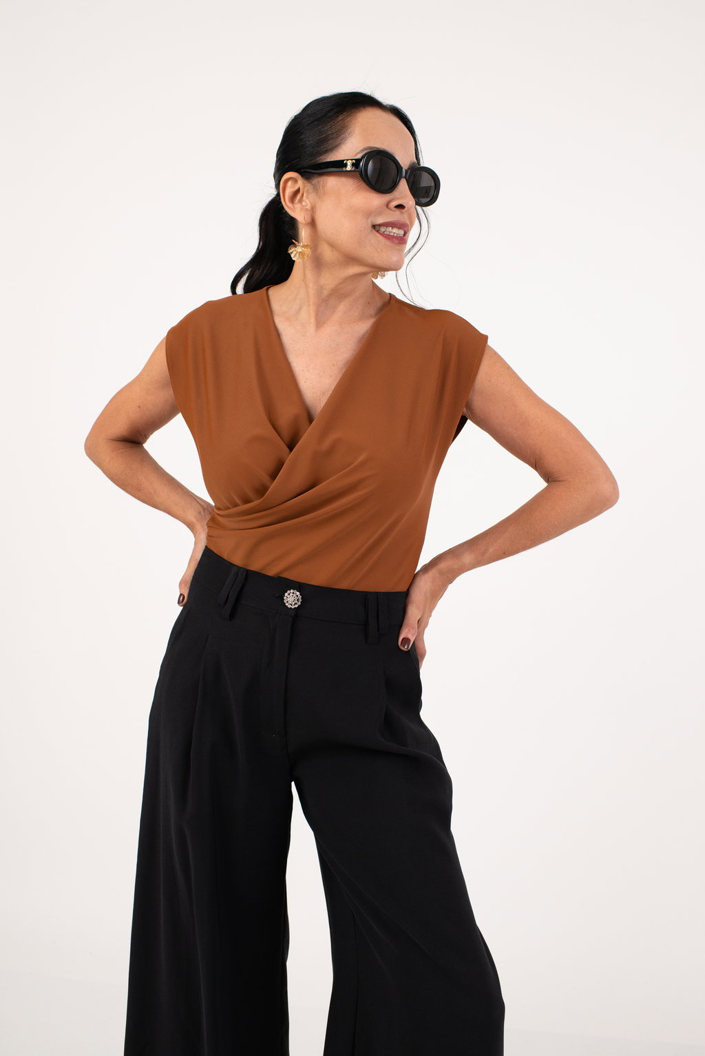 Body confeccionado en lycra Tricot, con escote cruzado que aporta estilo y elegancia.